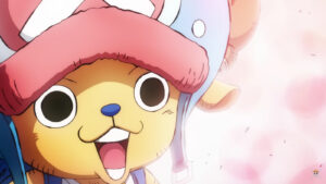 Rejected by his herd because of his blue nose and eating the Devil Fruit, Chopper is rescued by Drum Island’s quack doctor Doctor Hiriluk. While developing a potion to create cherry blossoms when in contact with snow, Chopper is heartbroken when Hiriluk falls ill with a deadly disease. After Hiriluk’s death, Doctor Kureha takes him in as his mentor. After the Straw Hats arrive at Drum Island and take Chopper with them, Kureha uses Hiriluk’s potion to turn the snowy sky into cherry blossoms, fulfilling Hiriluk’s life mission. When complimented, Chopper acts flustered and sometimes yells at the person who complimented him to stop trying to make him happy.[ch. 140] A running gag within the series is when other characters mistake him as a Tanuki, and he angrily corrects them, pointing out that he is a Tonakai (Japanese for “Reindeer”).